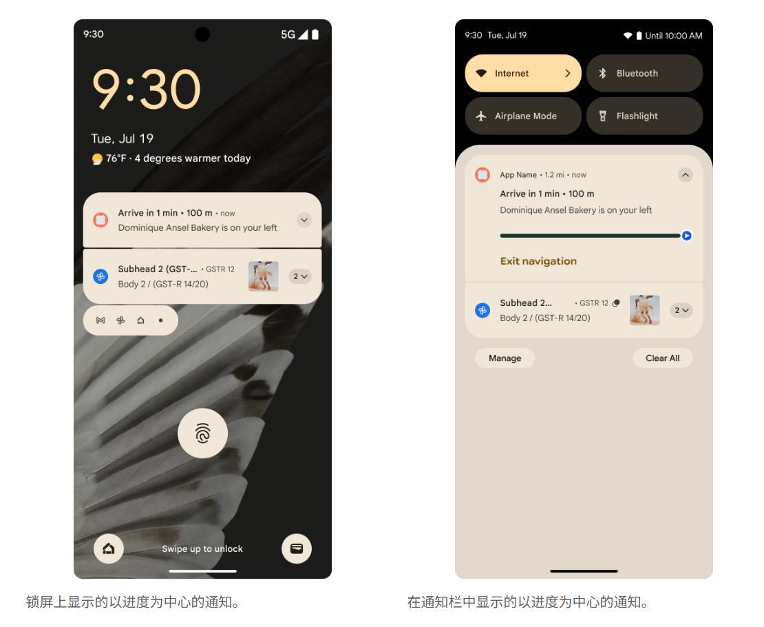 此外,Android 16新增类似苹果灵动岛的Live Updates(实时更新),可在通知栏、锁屏和常显显示(Always‑On Display)中突出展示关键流程的进度,例如网约车到达时间、外卖配送状态或导航距离,开发者只需调用新API即可创建统一规范的进度通知。