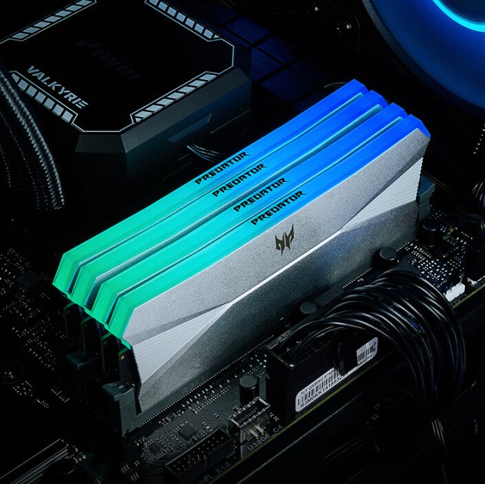 在往上可以看看宏碁 掠夺者 冰刃 的旗舰冰刃系列,既然是旗舰,那用料肯定没得说,都是特挑颗粒,平均体质会更好。有一点需要注意,冰刃同样有M-DIE和A-DIE不同版本,差价并不大,所以超频党尽量购买A-DIE和3GB海力士M-DIE版本,上限会高不少,6800频率及以上还会附赠内存风扇,能在极限超频时快速排出热量。外观方面是电竞风设计,个人还是蛮喜欢的。