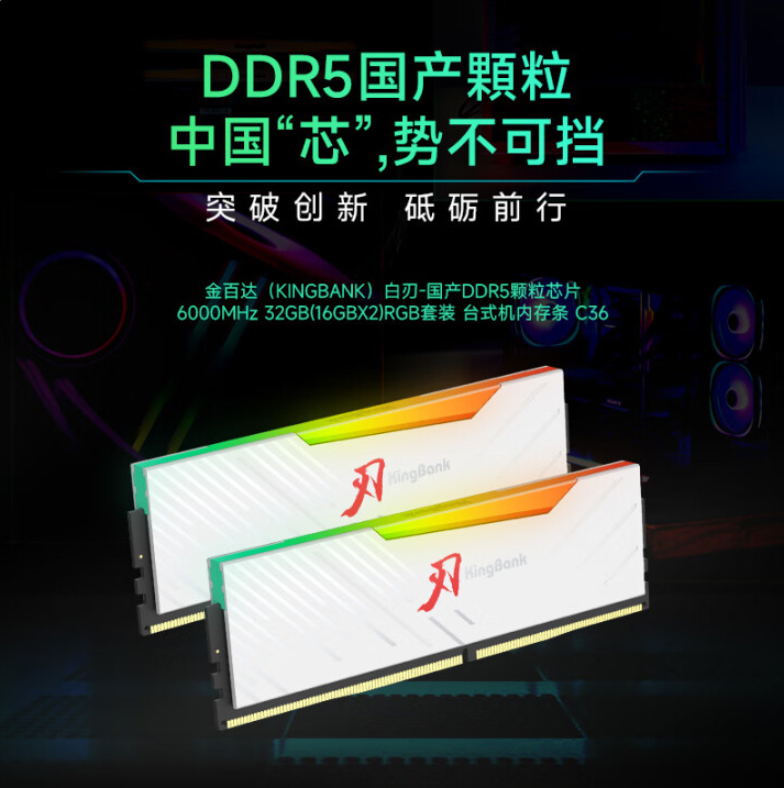 然后是D4灯条,追求性价比可以看看金百达刃系列,用料相比银爵提升很大,使用了白色合金散热马甲,分量感十足。颗粒方面,8G*2套装有长鑫和海力士两个版本,16G*2套装目前仅有海力士颗粒两种,颗粒稳定性表现都不错,大家可以自由选择,缺点是品控较为一般,不过售后体验很好,遇到的话可以申请售后更换。