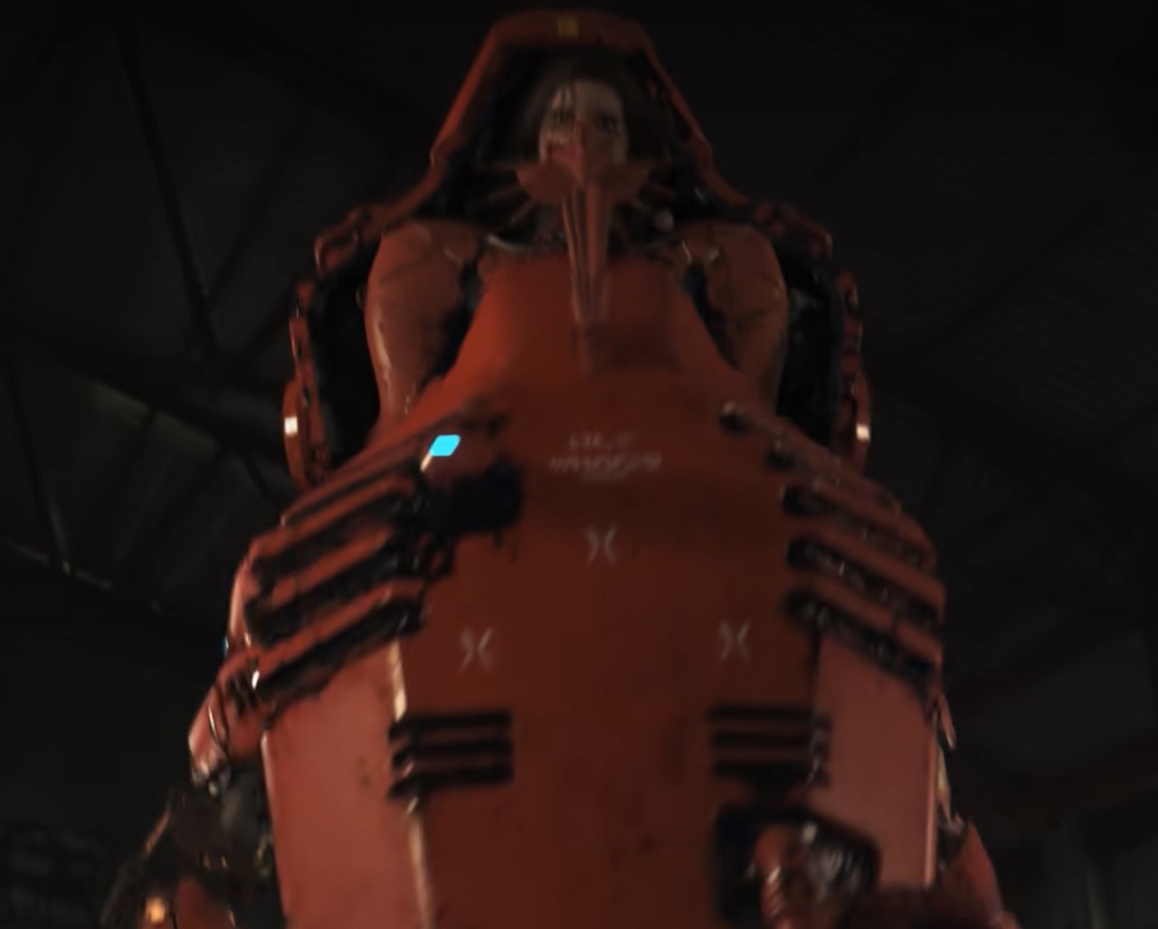 預告片中的"幽靈機甲棺材",機器人揹着希格斯