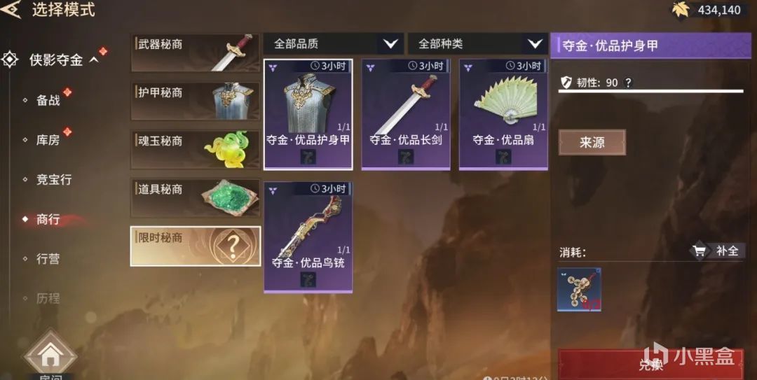 2、韧性:武器、护甲、魂玉根据韧性损耗程度,划分为【新】、【常】、【旧】三个等级,对应购买价格不同。