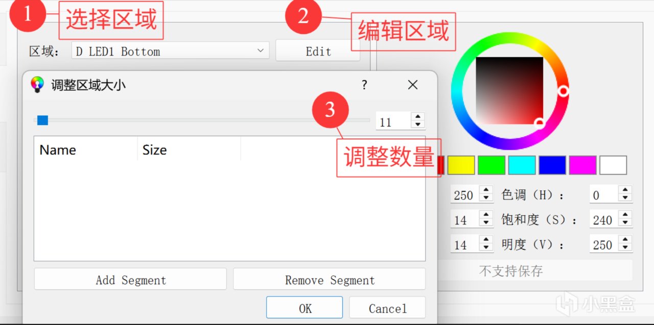 而如果設置成12,我選擇12號燈珠調整顏色,沒有亮起,說明數量過多