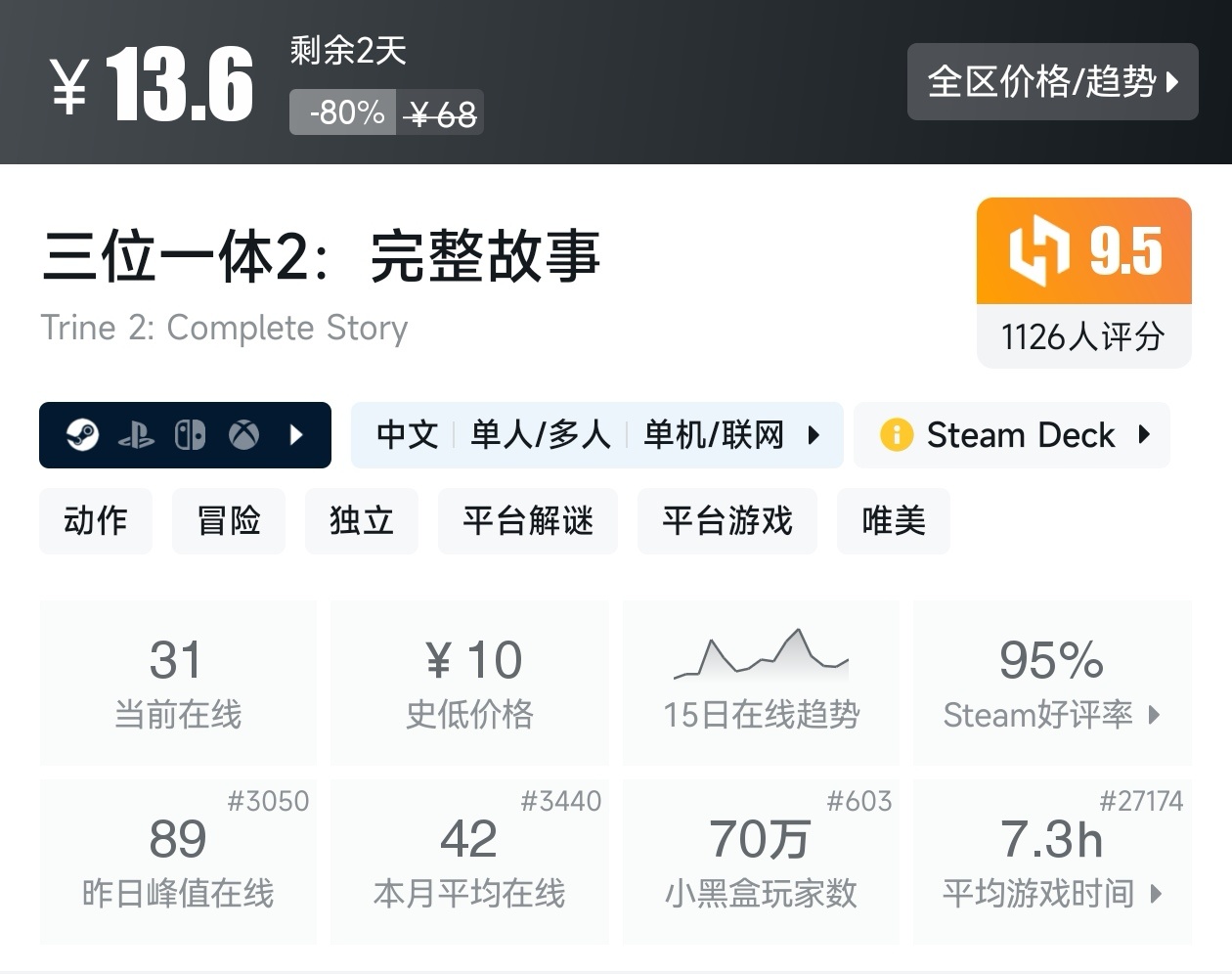 大家好,在最近,可以说很多游戏都迎来了折扣,这其中就包括很多双人联机游戏,双人游戏很适合与自己的朋友/兄弟/姐妹/对象/孩子一起玩,锻炼彼此的默契和协作能力,希望我的汇总,能够帮助到各位盒友挑选心仪的游戏。