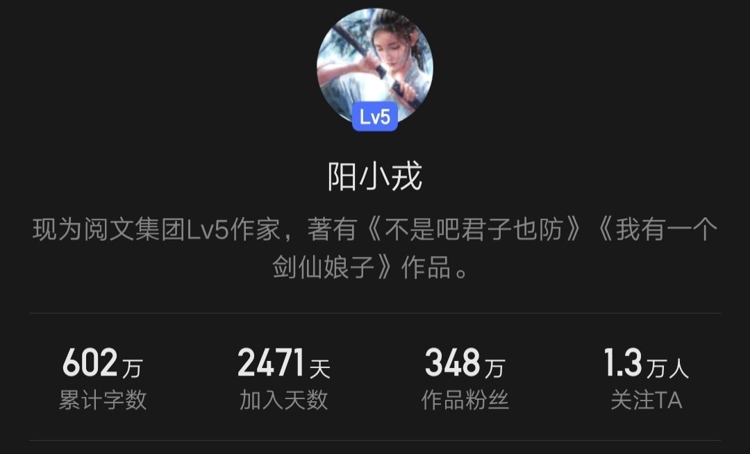 从《剑仙娘子》到新作,阳小戎都是以细腻情感描写和权谋剧情吸引读者,月票和畅销榜也一直都非常稳定。去年因为玄幻仙侠分类太卷了,连荣耀4星的作品都没能拿到12天王,而且更新也不太给力,写了好几年内容才过半,不过影视和漫画版权都已经卖出,成为大神的概率应该也不小。