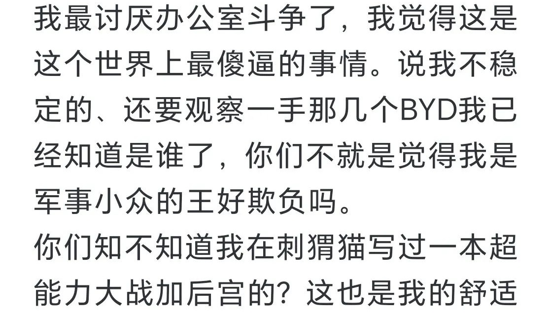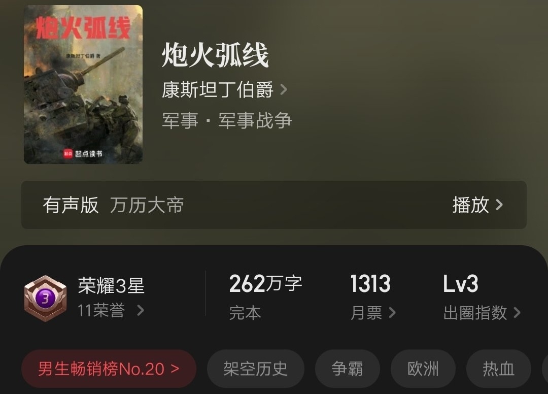 军事历史分类历来受政策限制,起点近年倾向扶持科幻、都市等安全赛道。他还有脸公然质疑起点的选择,在B站发动态称“起点高层打压自己”,并嘲讽古羲“数据注水却能上位”。事实上,古羲虽然因为刷票争议很多,但玄幻分类的商业价值比小众军事文高多了。