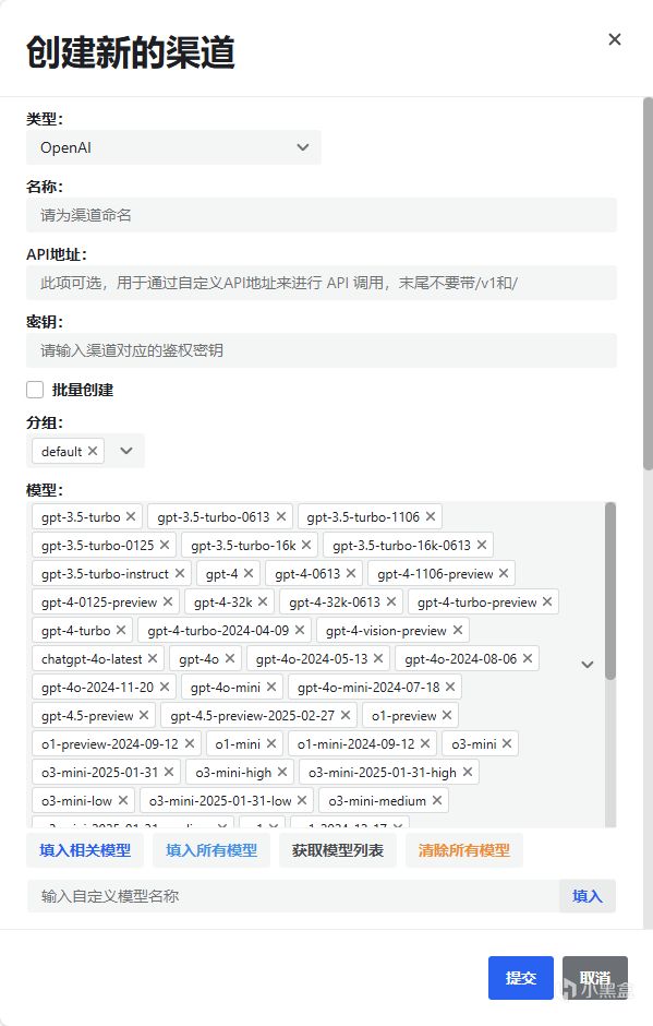 你可以手动输入模型名或者直接点填入相关模型后进行选择,注意前提你的渠道需要有对应的模型。