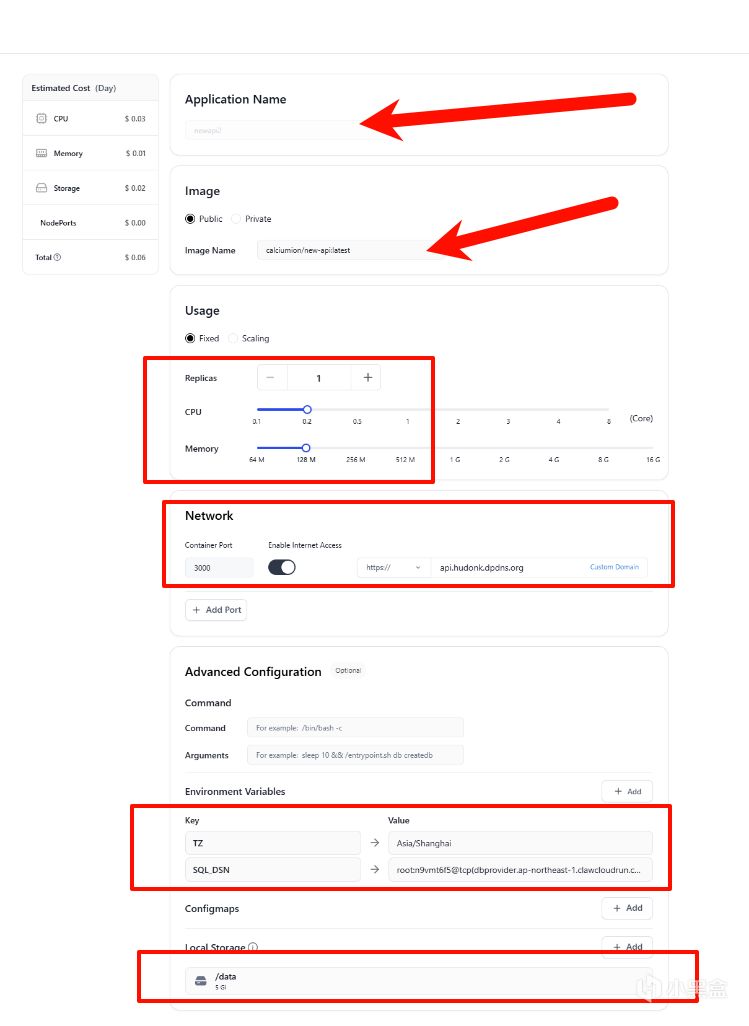 Cpu 和 内存 可以按照图给,如果自用,基本没有问题。你可以自己随便配置,只要左上角的金额不要超过0.15。因为一个月按30、31天算,我们还需要留一点余量给流量0.05刀/G,免费计划可以用10G,也就是最多0.5分配给流量,因为官方没说流量是免费的。