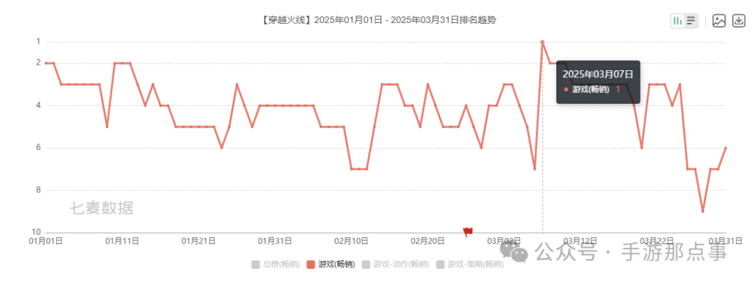 往后,在竞争激烈的春节档期内,《CFM》也延续了这一出色表现,不仅稳定处于iOS游戏畅销榜Top10之内,而且在3月7日这天,超越《王者荣耀》成功登顶榜首,展现出了惊人的生命力。据统计,今年一季度《CFM》的收入在中国大陆的所有移动游戏中排名第三。