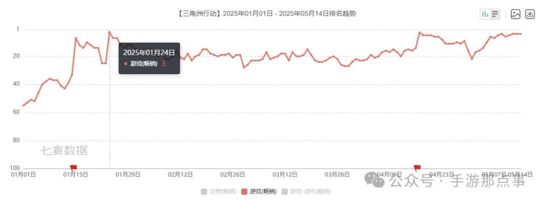 另一方面,《Delta Force》手游(《三角洲行动》移动版)于4月下旬在全球市场上线。该游戏随即登顶169个国家和地区的AppStore免费游戏榜首,以及125个国家和地区的GooglePlay免费游戏榜首,上线首四日注册用户数突破千万。