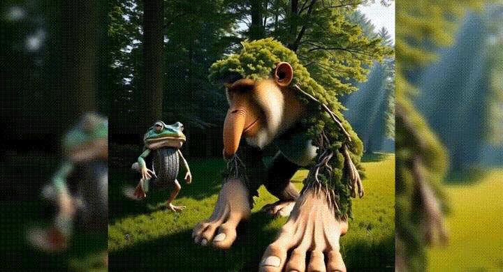 介紹:是由長鼻猴、灌木叢和人類大腳融合成的“樹人”。其鼻子像火腿般長,形象半像狒狒半像灌木叢。它說着帶神祕口音的意大利語,曾因金帽子裏住着藍蛙斯利姆而向巫師求救,最後斯利姆被氣球趕走,它獨自在腥風血雨中起舞。