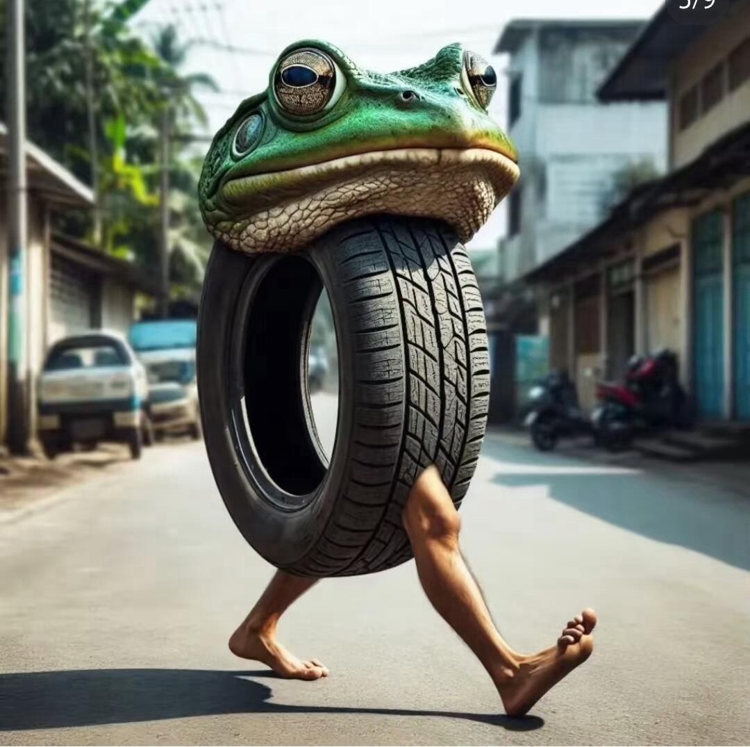 介紹:中文名叫“輪胎青蛙”,是AI山海經中的角色。在技能方面,它無法攻擊,常被調侃爲“純廢物”一個。從形象上看,它是青蛙和輪胎的結合體,不過具體形象可能因不同的創作者或生成方式而有所差異。在相關的遊戲或梗視頻中,它作爲古怪離奇的角色之一,增添了整個AI山海經世界的荒誕和搞笑氛圍。