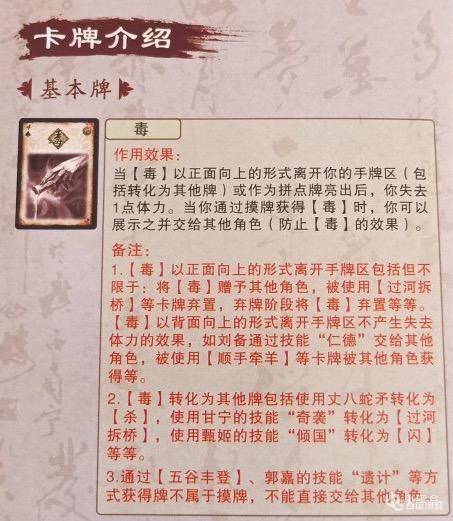 三技能毒医,华雌可以将【毒】当【杀】、【刮骨疗毒】或【以毒攻毒】使用。