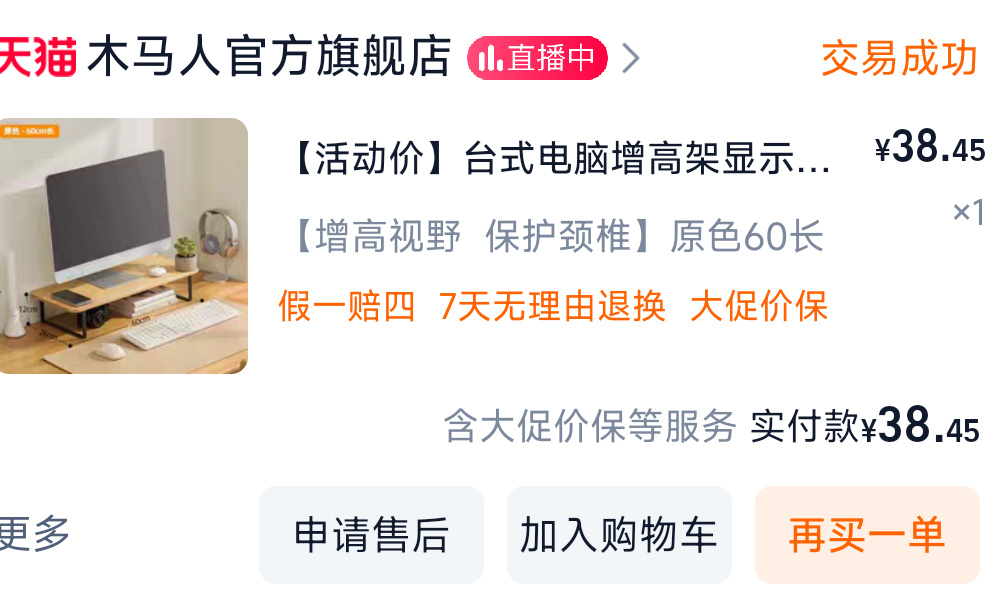 显示器是三脚架的,所以很占空间,而且最高高度看着也要低头,不是很舒服,遂买了这个。 如果不买那种显示屏支架,我建议就买这种。