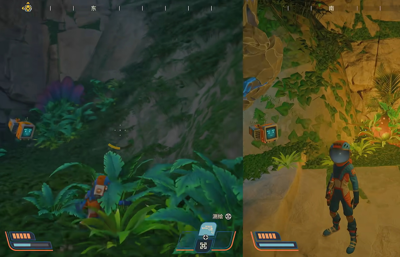 遊戲的探索元素極其豐富,玩家可以通過掃描植物,捕捉動物收集不同星球上的資源數據,而完成支線則可以獲得滑鏟,鉤鎖等一系列基礎之外的“技能”,讓原本困難的地方變得簡單。
