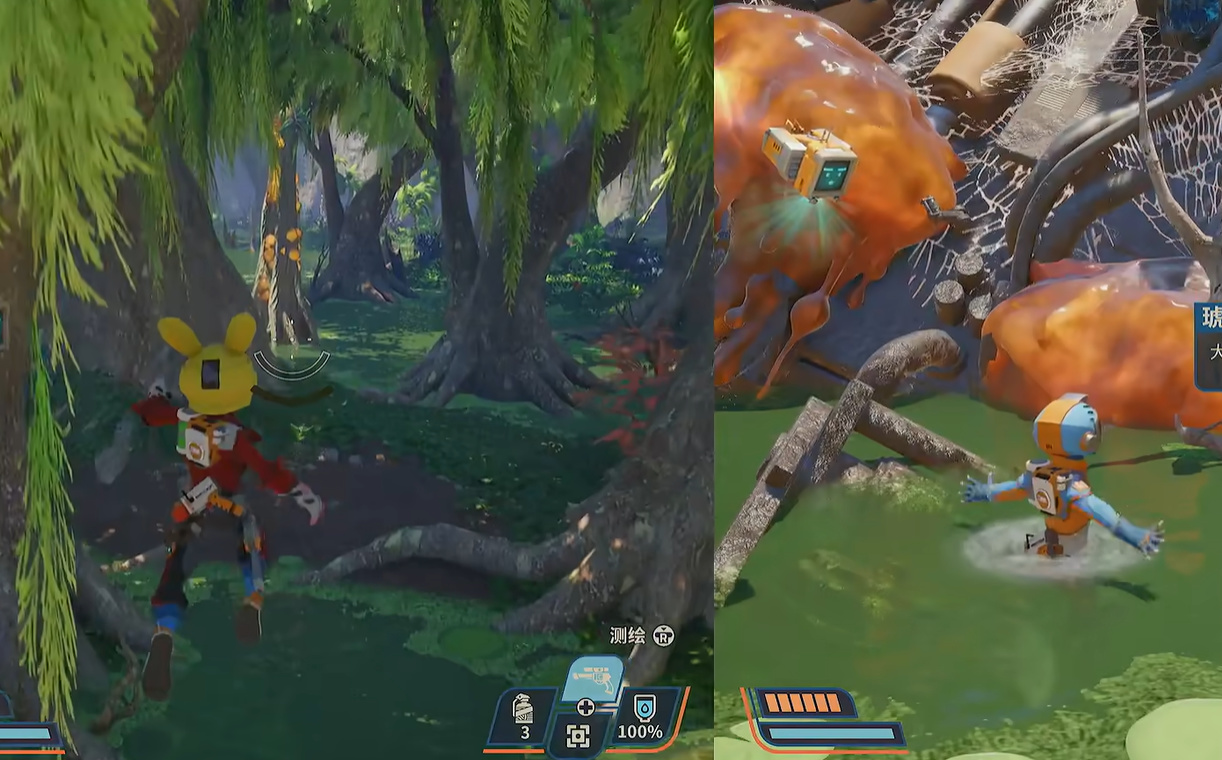 (雖然前面說了,但避免有人直接跳轉,還是簡單補充一下) 遊戲以開放世界探索爲核心,包含四個風格迥異的星球,每個星球都有獨特的生態系統和隱藏祕密。玩家需掃描植物、捕捉怪物、收集材料升級裝備,並解鎖新技能(如滑鏟、抓鉤)以探索更多區域。收集要素豐富,如提升血量上限的橙色膠、特殊建材等,滿足收集癖的成就感。