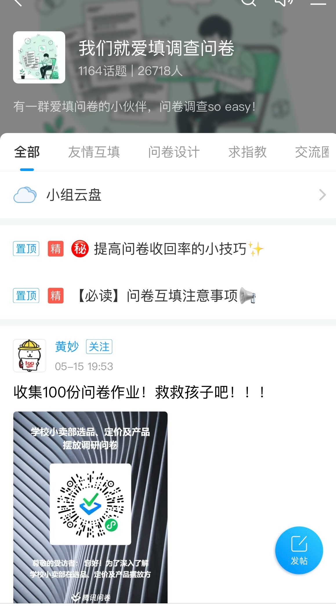 大家看到这个名叫“我们就爱填调查问卷”的小组了没,