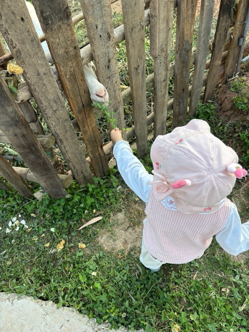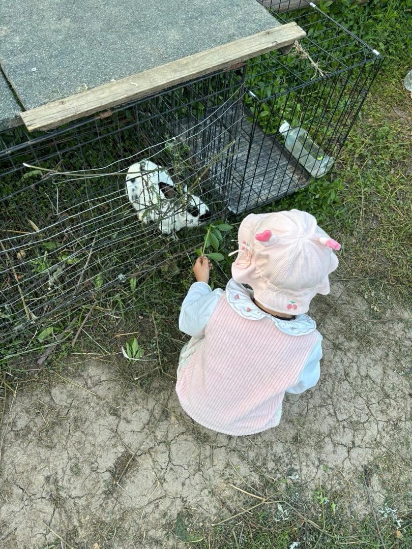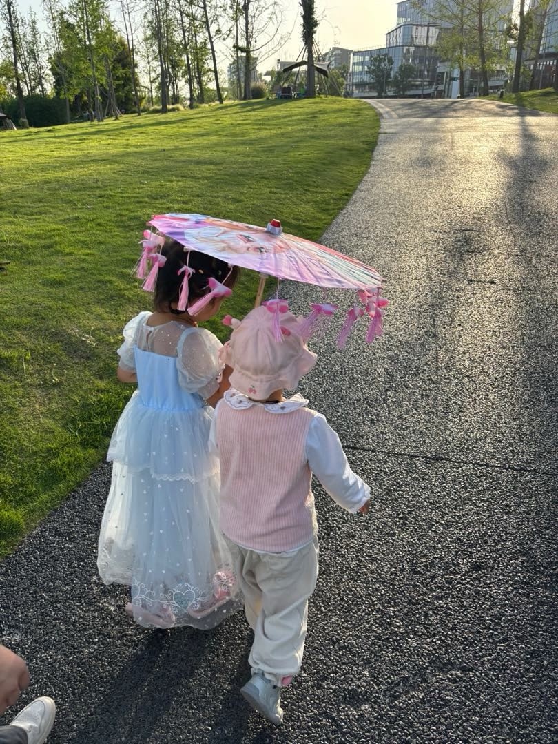 在北京一直比较暴躁的筠崽回来后特别开心,和姐姐一家玩的很高兴,完全不抵触,两个人还打着小伞一起散步,一起喂了兔子和小羊,给高兴坏了