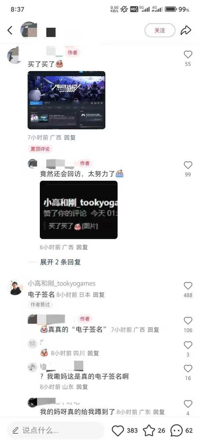 他在评论区打了这四个字,还真就字面意义地给玩家送上了一份“电子签名”,而玩家也投桃报李,购买《百日战纪》——就这样,销售员小高又成了一单。