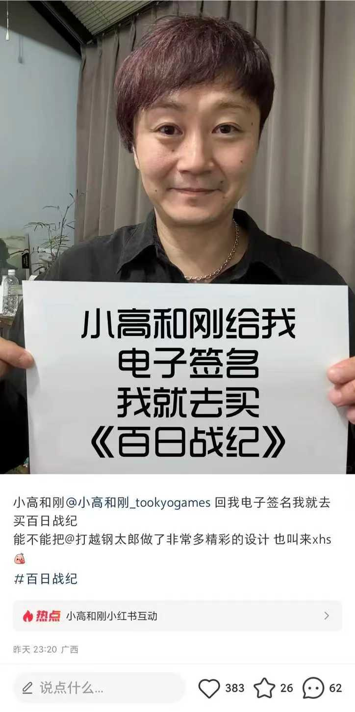 小高和刚_tookyogames:“你是谁?请支持百日战纪。”