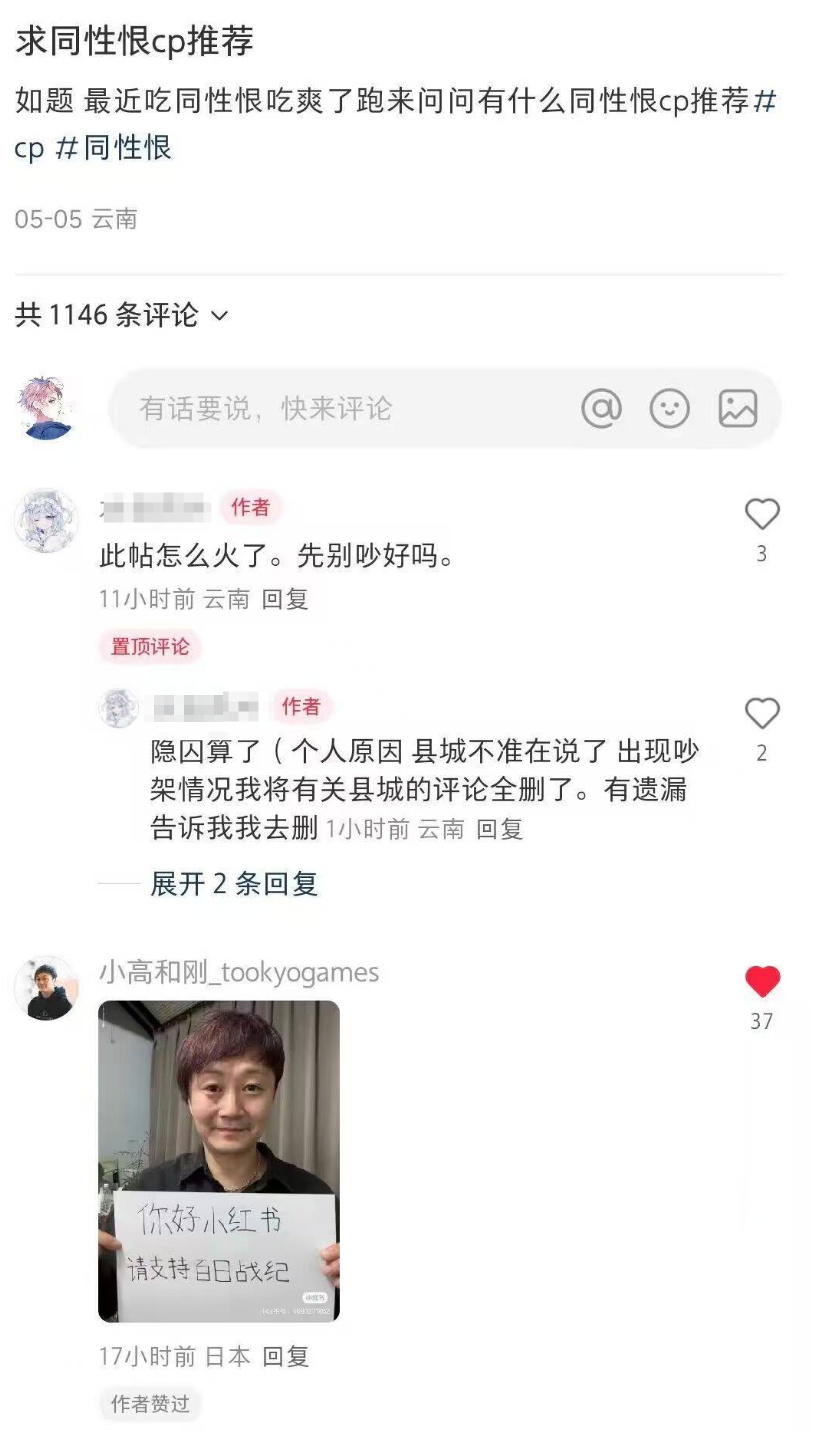 甚至是风马牛不相及的“寻找同性恨CP”帖底下,都能看到小高的高强度推销——