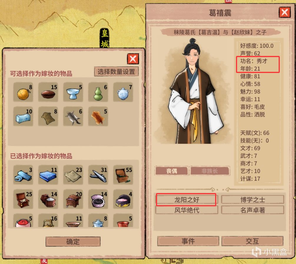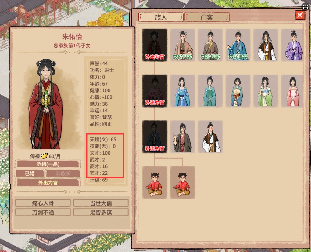 整个过程类似《幻兽帕鲁》的配种,街头刷新高属性寒门,与世家大族联姻。