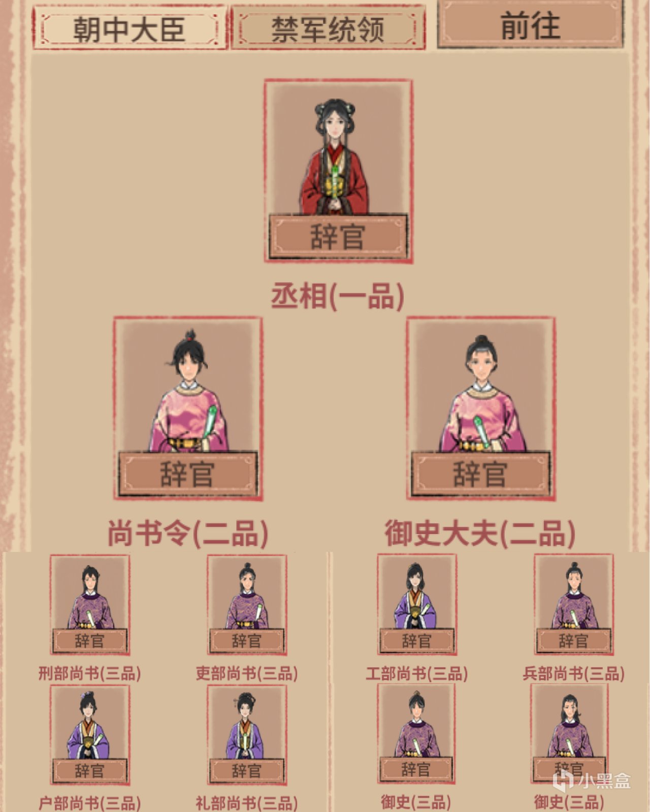 相比于高战损的武将养成线,文官平步青云。在执掌兵部尚书和郡守后,可以调动禁军和地方军支援武将,两条养成线相辅相成。