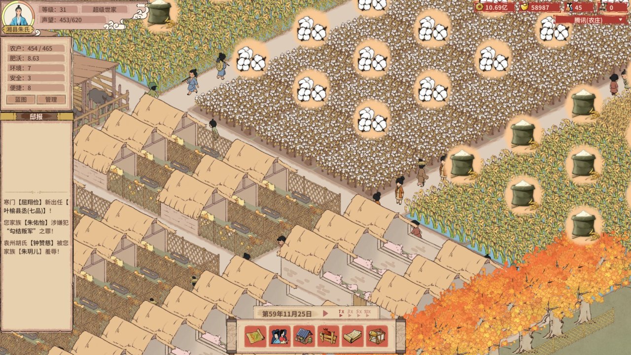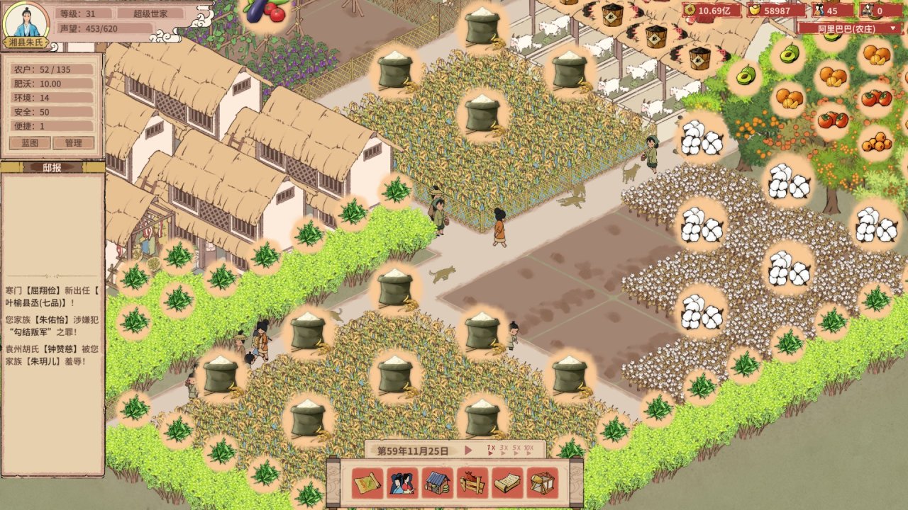 游戏后期玩法比较单一,重复性操作稍多,例如各个农庄地租的验收、族人生病事件,希望能出个自动化处理功能;