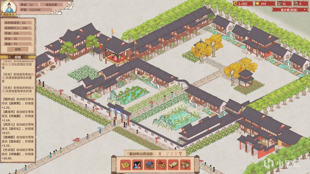 有古风建造、种田经商、宦海浮沉、城市建造,但家族模拟才是《吾今有世家》的核心玩法。