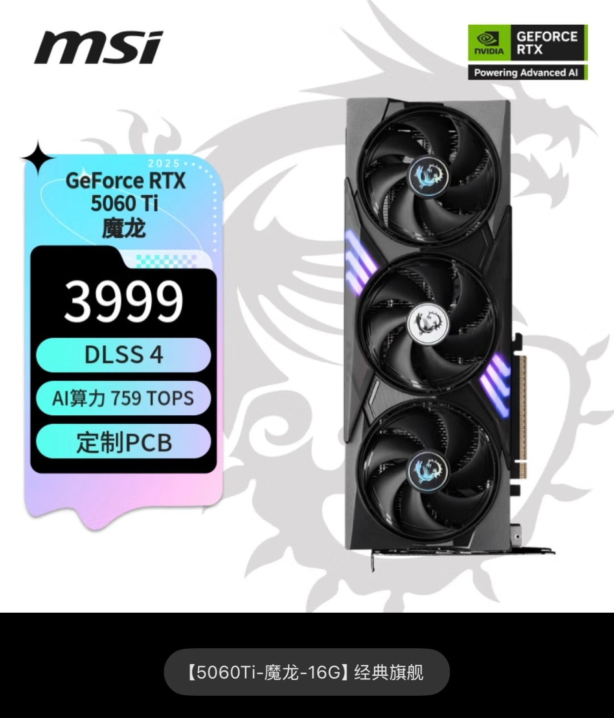 2. 重度玩家,這類人可以選今年剛發佈的50系顯卡,個人推薦5070ti,所有50系中選最穩定的了,4k入門/2k巔峯,玩一些大型3A幀率很不錯,相比於上一代4070ti,有10%左右的提升(採納某些測評up主),擁有新一代的技術(幀生成),幀率有很大提升,dlss也來到了4.0,實力非常強悍,目前這張卡的價格在某東一線有華碩/技嘉/微星(俗稱御三家),目前華碩最貴,技嘉和微星差不多都在8000左右(注意⚠️這是高端卡的價格,丐版更便宜點,但用料不行,有條件儘量上高端卡,用料好點/也比較好看)準一線七彩虹(7500左右,去年的銷量王)二線影馳7500左右.想上更高配置,直接5080(4k無壓力,玩他個5年,隨便造),5090國內禁售,5090D聽小道消息也要禁售了(一線御三家價格在3W左右,二線3W以下,和我們平民不沾邊,也比較浪費錢,性能屬地表最強,8年內不用換顯卡)