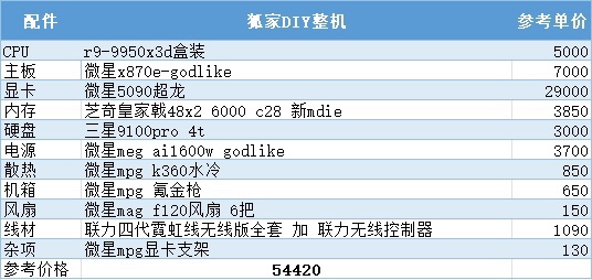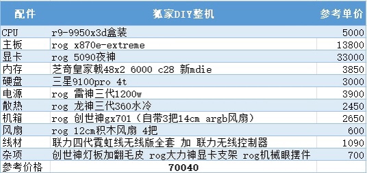 再往上的9950x3d已经是富哥专属了,对于游戏基本没啥提升,而生产力又不如9950x更有性价比,如果真的需要建议定制一套