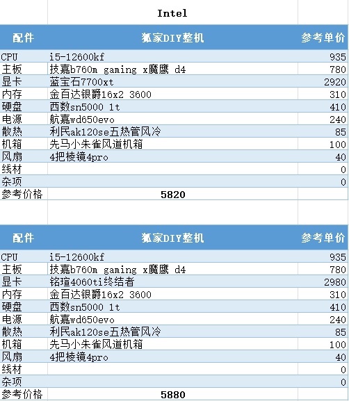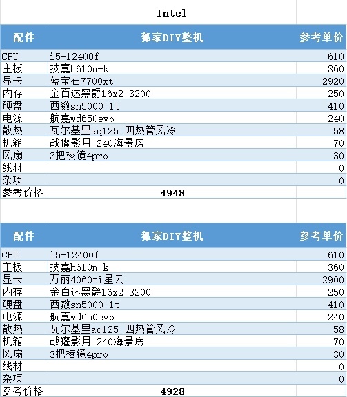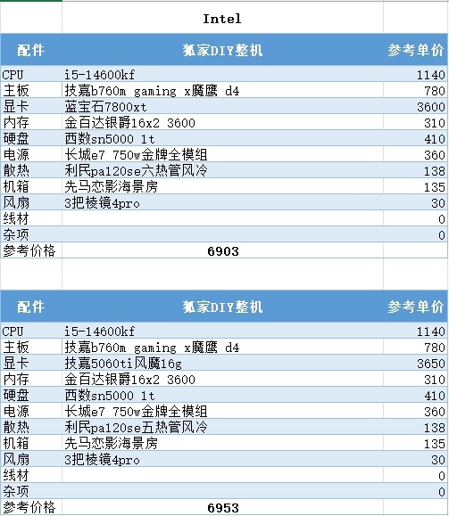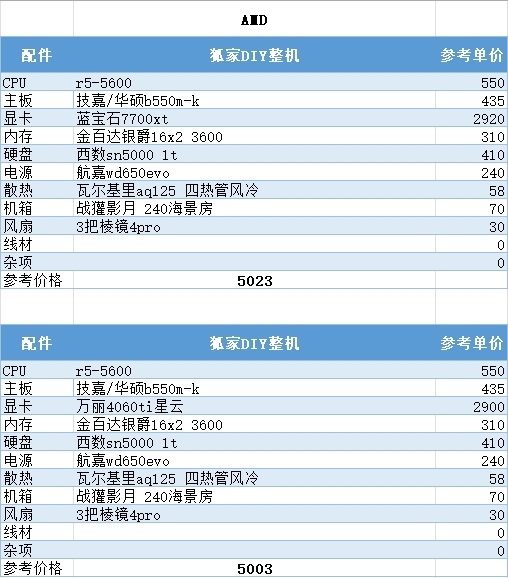 到了5000元价位就是很多学生党自己攒生活费能到的最高的价位了,7700xt或者4060ti也算是2k入门卡了,除了3a大作基本都可以2k流畅游玩这套的4060ti可以等过段时间5060出之后观望一下5060ti的价格,如果5060ti8g降到2900到3000可以入手