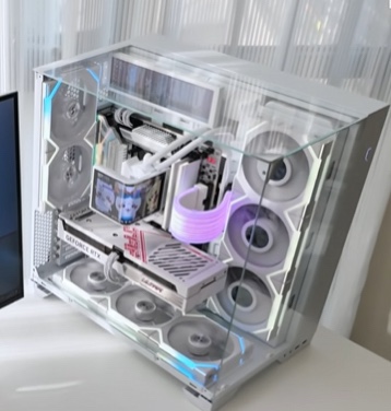 这也是最近有很多盒友咨询的搭配,不得不说白色海景房这块联力这个机箱还是玩明白了,隐藏式水冷走线加3面玻璃颜值真的不要太高,搭配上白色冷光在昏暗的房间里就像女神般的存在