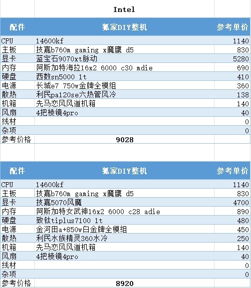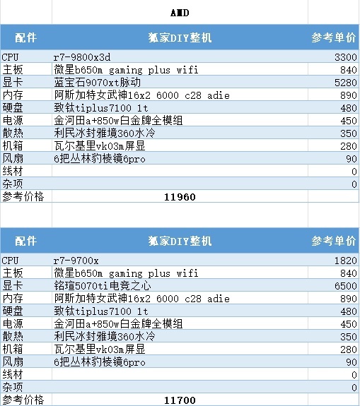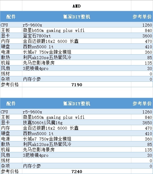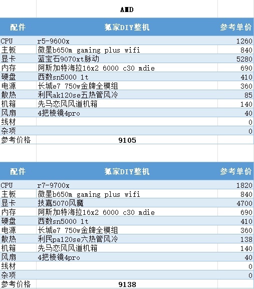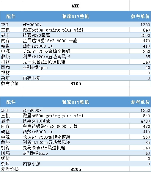 很尴尬的价位,在不丐的情况下要么上96x加9070xt要么上97x加5070,鱼和熊掌没法兼得,丐一点可以换铭瑄b650m终结者,内存换国产颗粒,这样就可以憋出9700x加9070xt但铭瑄的板个人不建议小白碰,兼容性问题导致基本每台机器都要刷bios,而铭瑄的bios又是出了名的难刷