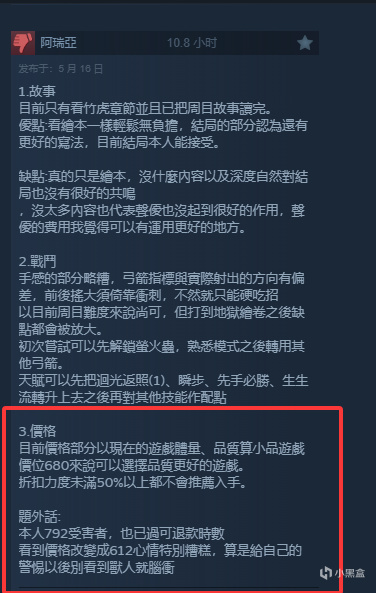 繁中的评价对比起来就更有意思了,他们不评判竹虎的剧情也基本不批判游戏内容,而是因为简中和繁中的售价差异过大不公平在申讨价格,并将自己称为盤子、792受害者。