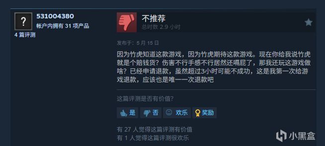 抛开不健康的原因不谈,简中的差评主要集中于游戏内竹虎这个角色在各个周目都死得很惨,也就是对剧情角色塑造的不满给出差评(目前统计总共有11条以上,占简中区的差评量近乎快一半了)