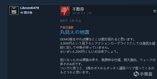 关于《完全暴露的地雷》 如果玩过试玩版的话,基本上就能见识到所有糟糕之处了。作为一款俯视角轻度Roguelite动作游戏,面对3000日元这个充满傲慢的定价,游戏内容根本配不上。顶多也就是1200日元水准的作品。 我在意的主要有四点:过度僵直、无意义的设计、永久强化系统、以及过多的敌人波次。顺便一提,第一关BOSS上来就开延迟屏障的操作也让人摸不着头脑。 关于过度僵直 为什么每次中弹都要让角色屁股着地变成活靶子?在Roguelite游戏里体验怪物猎人式的倒地硬直还真是头一遭。被包围时根本就是等死,建议开发者自己带着三级减僵直符文来重新体验。 整个动作系统被切割得支离破碎,不用弹反流打法就寸步难行。如果采用冲刺+轻攻击为主的打法,面对BOSS和多个霸体敌人时根本是自断生路。这种设计严重限制了玩法多样性,令人倍感压抑.....