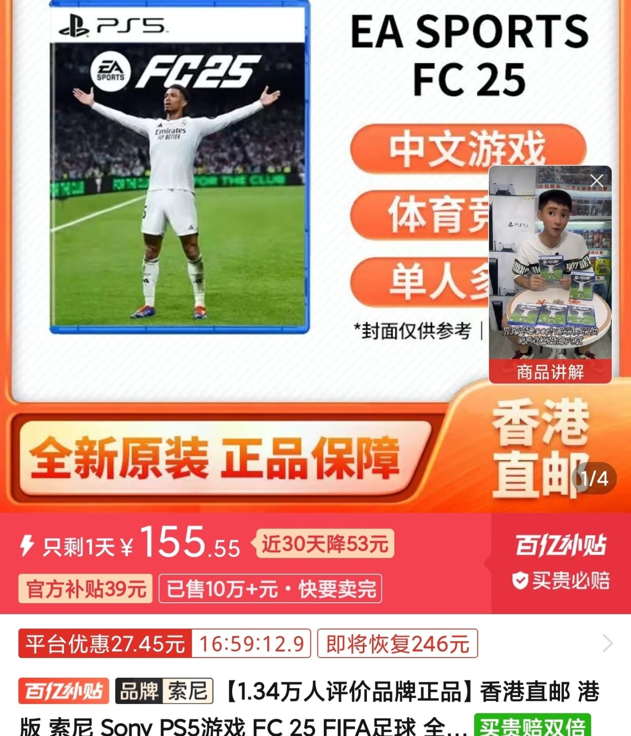 fc25也是超史低155,fc25這一個月降了70塊錢了。