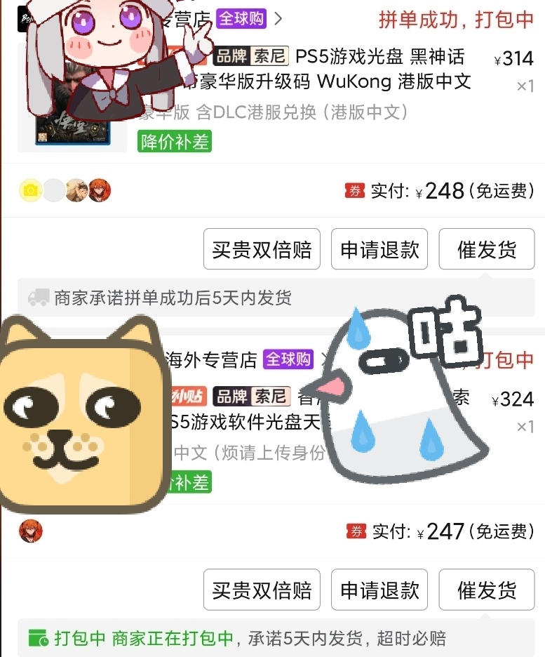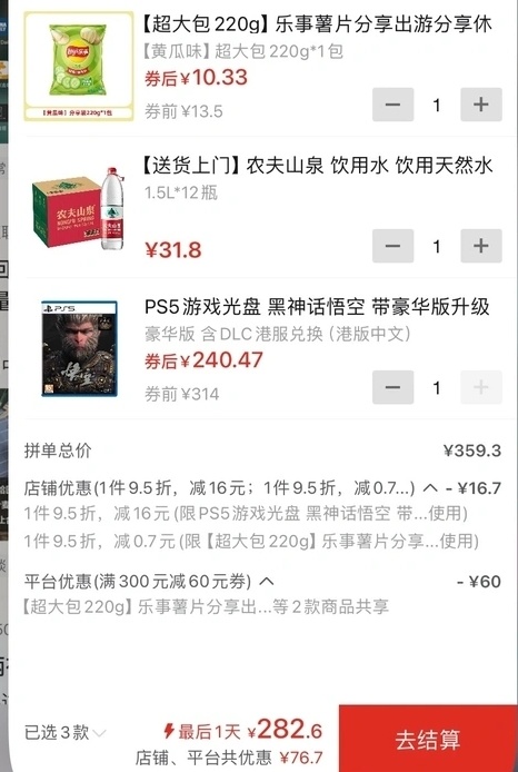 都需要百億超市,不湊單黑猴是248,沒有百意超市是268。