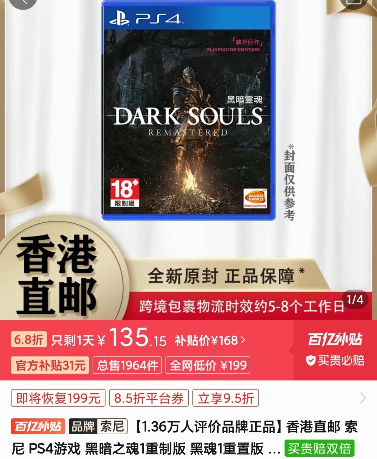 平史低135黑魂1re又上了,這個還是收藏大於遊玩價值。