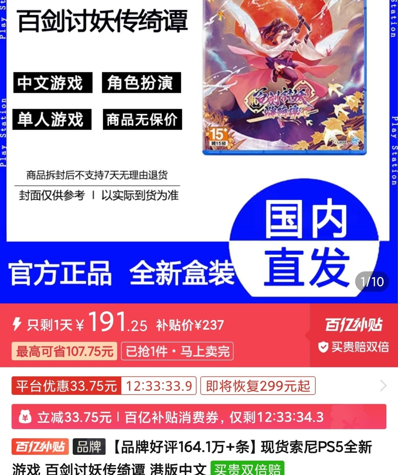 百劍討妖191國內發,新史低,貌似風評還不錯 之前也賣過幾次。