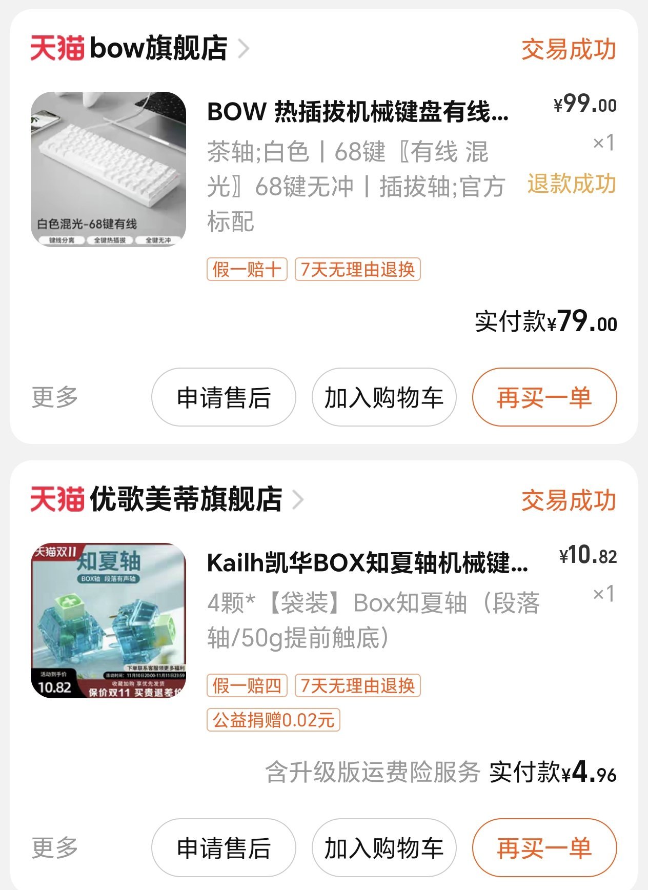 还记得当年想去鱼里收个套件玩玩,结果动不动就是150左右,卖家人挺好的,聊了很多也帮我解决了很多疑问。但是想想全新的拆了轴帽也就差不多这个价,还是没有下单……穷学生嘛,不丢人。