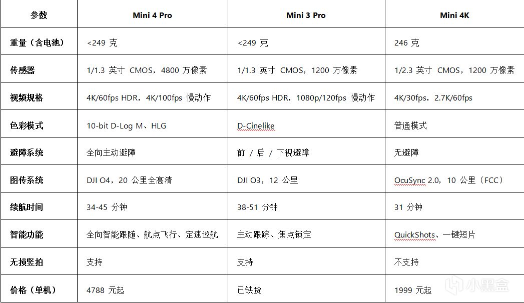 有人可能問,對比Mini 3Pro和Mini 4K如何呢?這部分我懶得查了就讓AI生成個圖表看看吧: