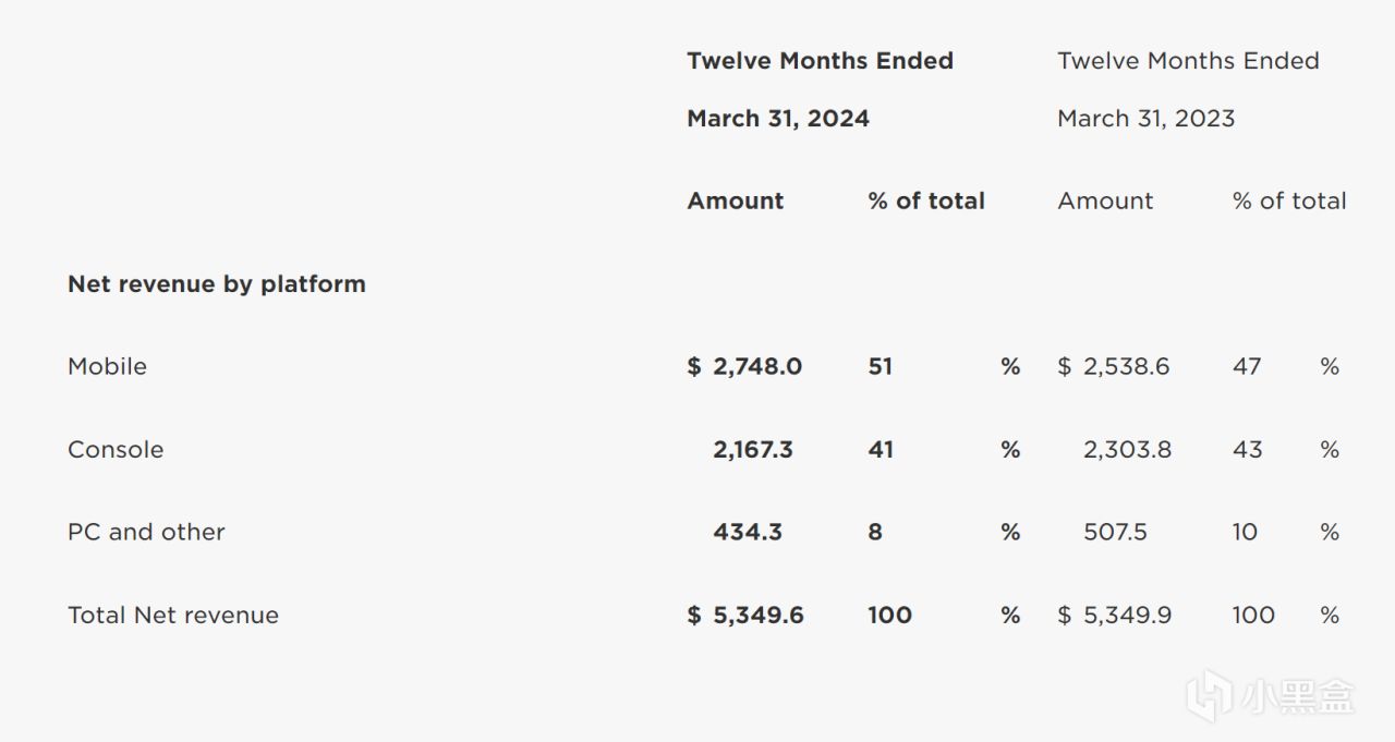动视暴雪被收购了,只能查到最后一个季度动视PC是26%,主机是60%,暴雪PC是73%,主机是8%