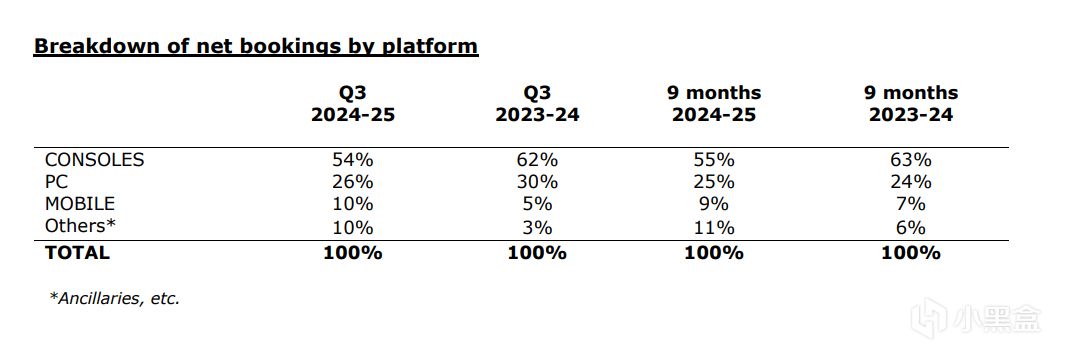 额外信息:某个评论提到的各家财报,育碧24财年Q3 PC占比26%,主机54%,Q4PC占比38%,主机35%,Q4财年就出了个影,全年PC31%,主机45%,主机是ns,ps,xbox三家一起算的,PS应该占比多少合适?