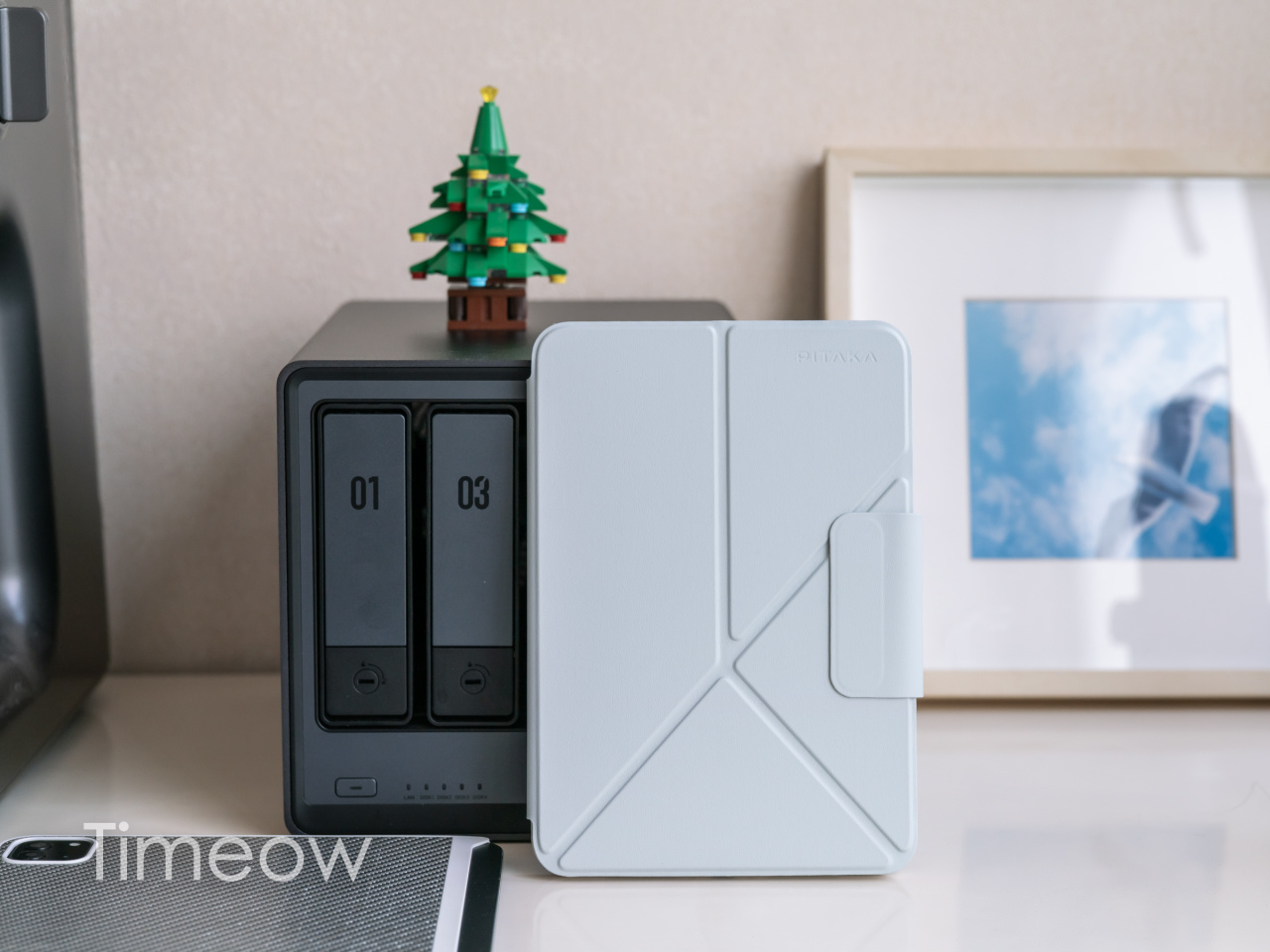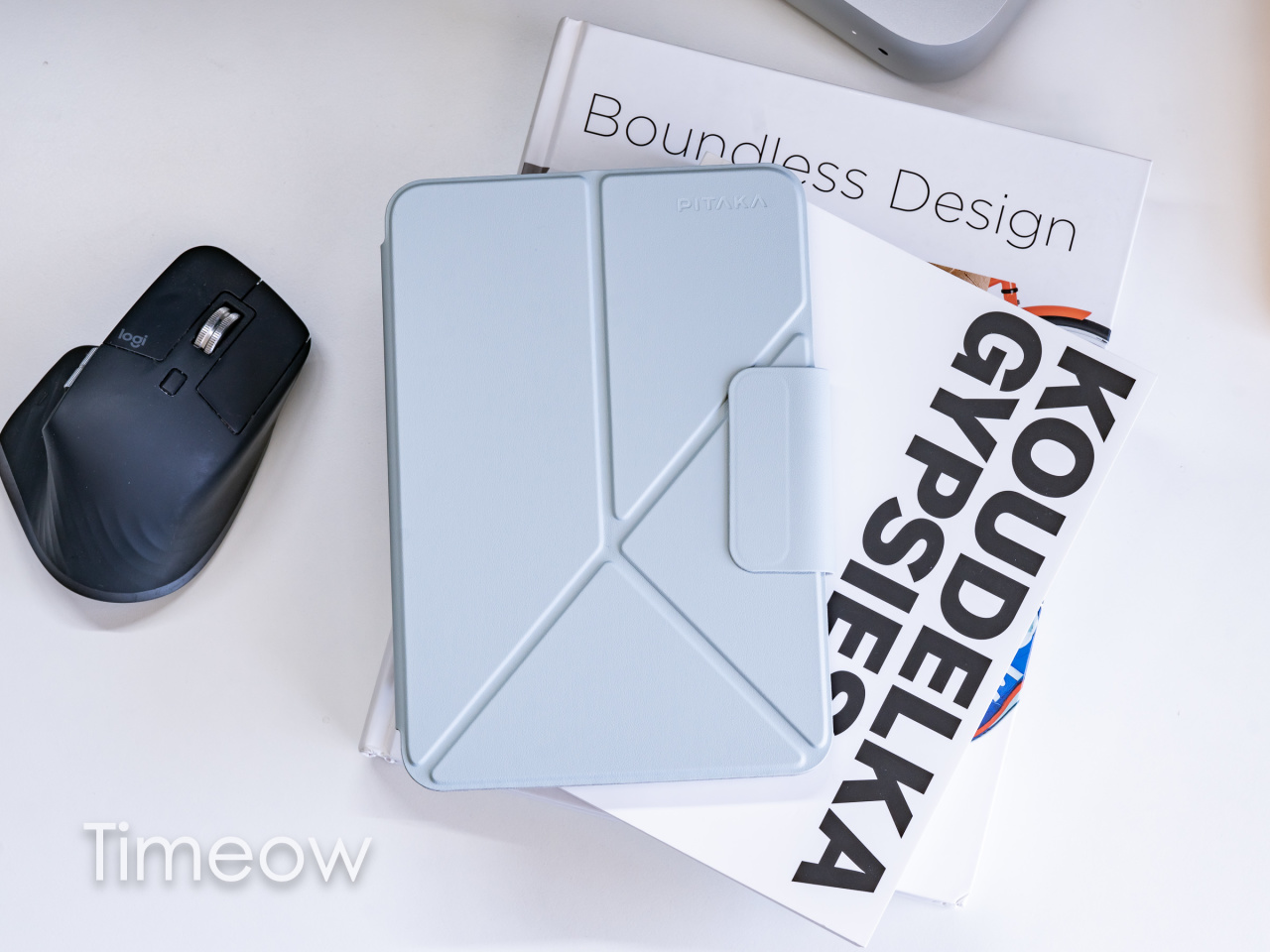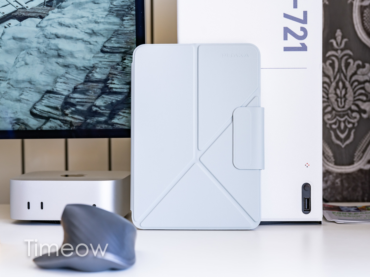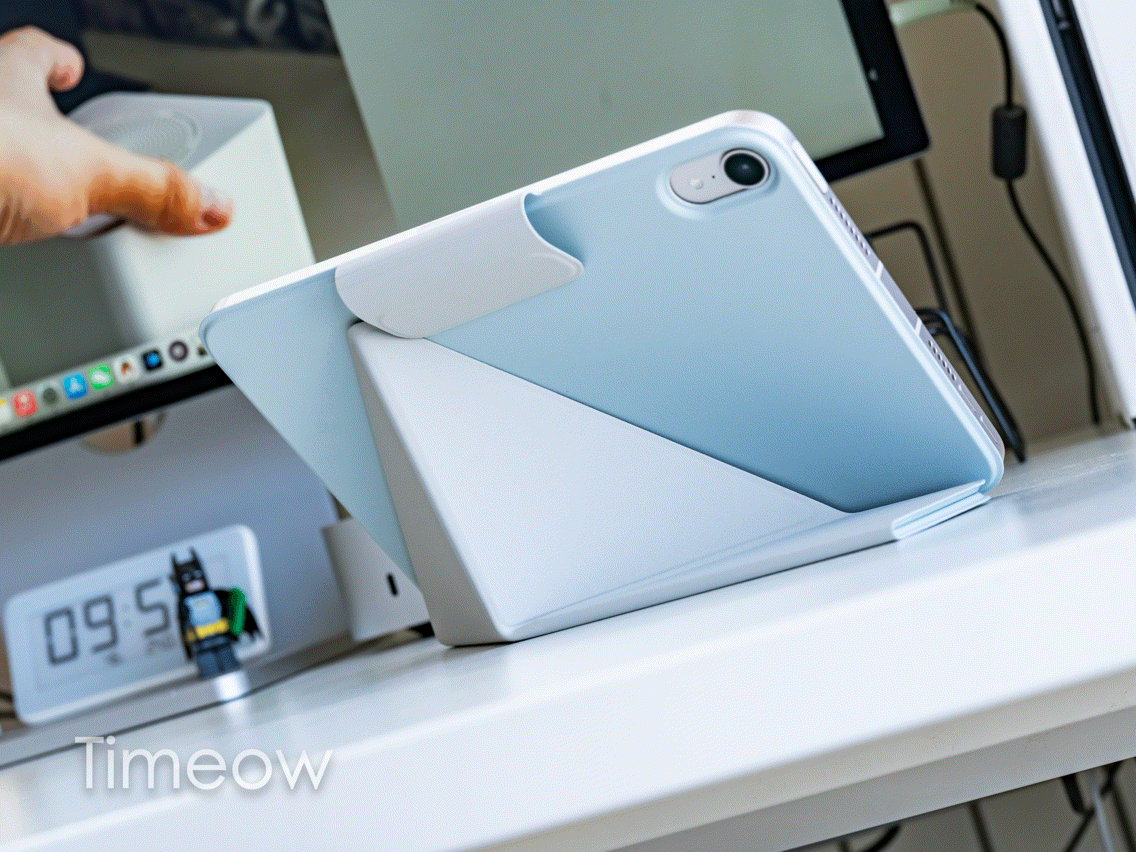 它的材质表面很柔,但内里挺硬的,再通过精巧的设计,可以折叠搞出多种姿态,看东西、画画、横着、立着都还行,在火车和飞机小桌板上用挺合适的。