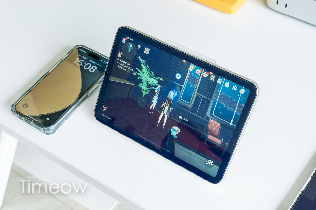 而60Hz这方面,肯定有复读机会说果粉自适应,【对我来说】iPadmini的60Hz屏不丝滑是肯定的,但你说不流畅我是不认可的:我在用的设备里,60Hz虽然是最低的,但沉浸在内容里的时候根本不会注意到120Hz和60Hz的区别的。游戏方面,我不玩农药不吃鸡,只偶尔玩玩米哈游;视频方面,我就看看24Hz的电影和美剧、以及60Hz的B站小视频;内容生产和消费时我更在意的是省电,我120Hz的iPad Pro甚至是开着低帧率模式使用的。