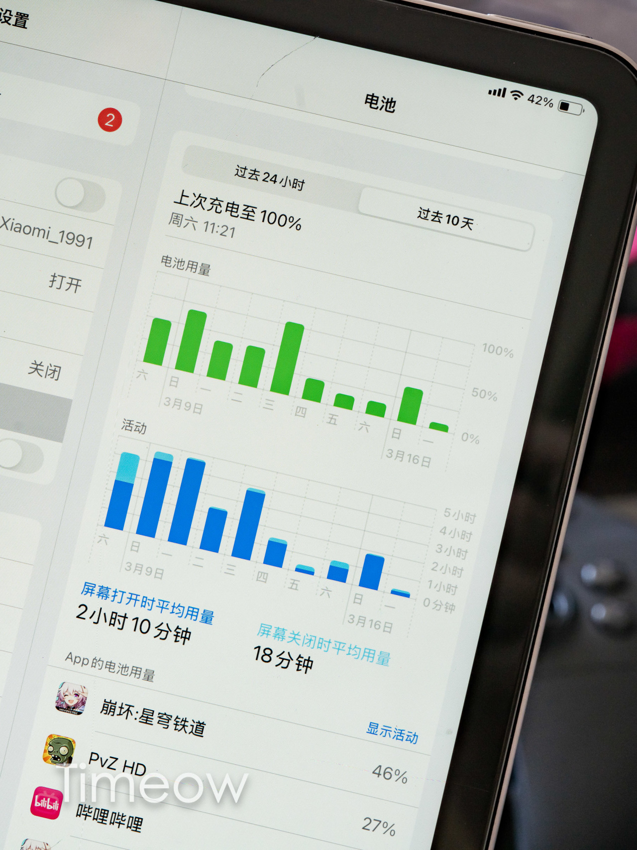 和这几年的其他iPad表现一样,自从M芯片iPad Pro开始至今,苹果开始给iPad虚标续航了,实测满电中重度用一上午,就只剩30-40%了,重度使用的续航应该只有5小时,和以往相比真的差远了。