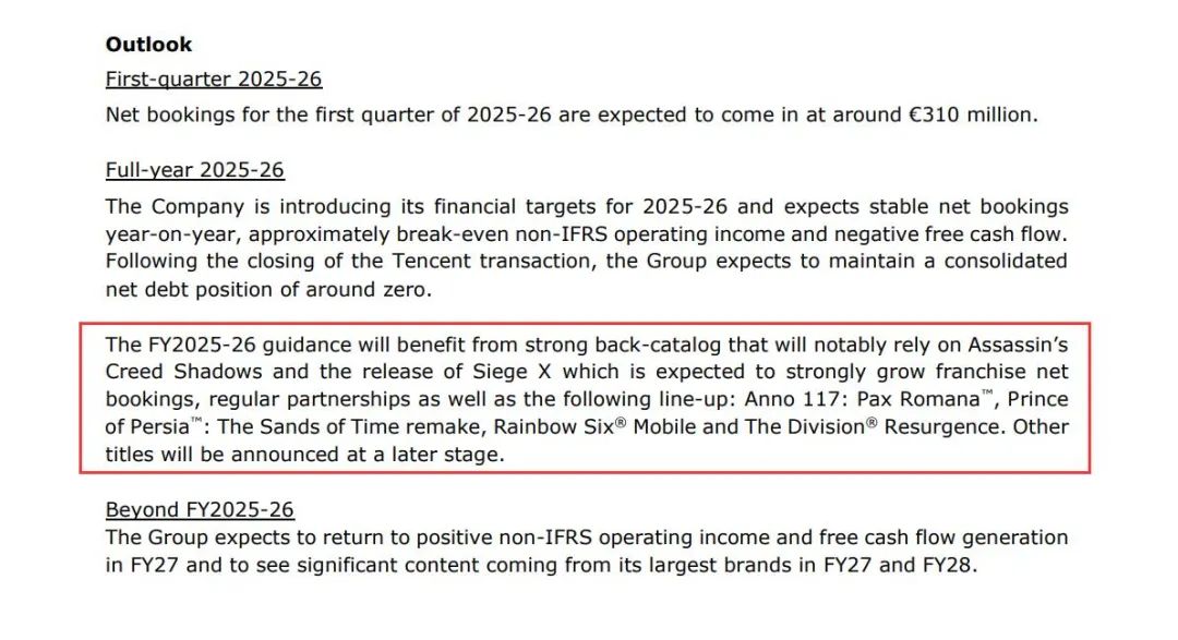 育碧財報信息顯示,有4款遊戲預定將在本財年內(明年4月前)推出,包括:《紀元117:羅馬和平時期》、《波斯王子 時之砂 重製版》、《彩虹六號 手遊版》和《全境封鎖 復興》。