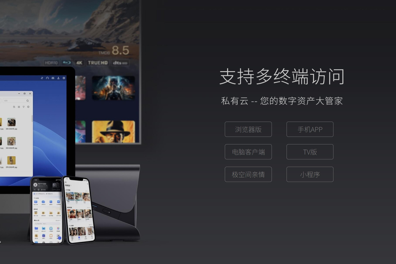 ● 手機端支持安卓和iPhone,細分成常規客戶端、極空間親情(簡單版本)和小程序(更簡單)三個版本。