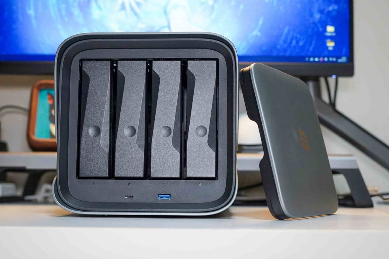 極空間Z4Pro+外形爲家族式設計,槍灰色航空鋁外殼的質感確實沒得說,不僅兼顧耐用,同時還兼具科技美感。